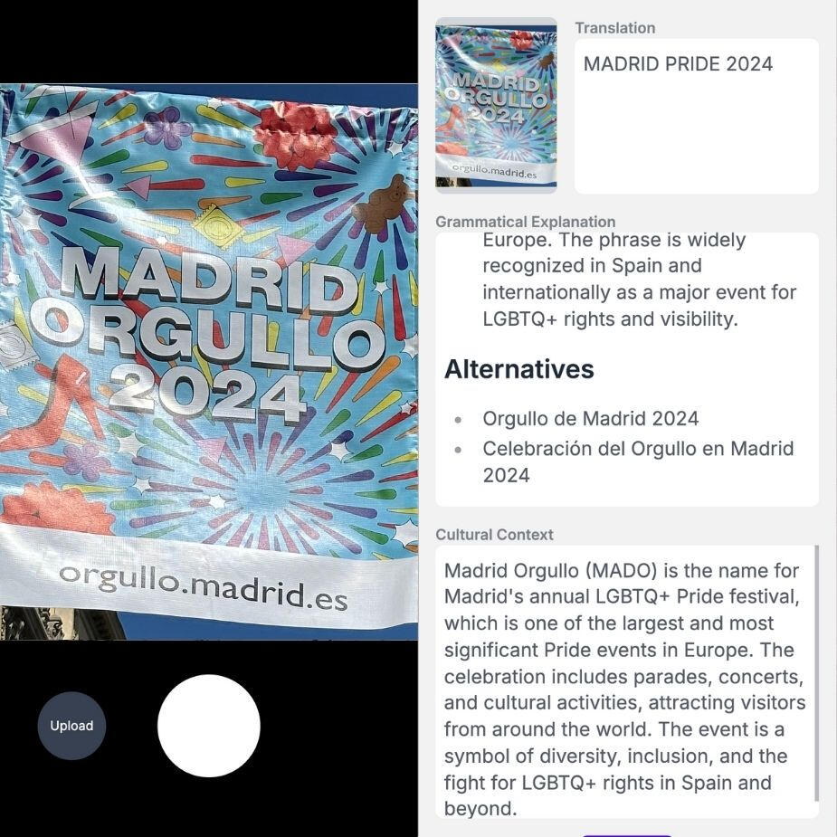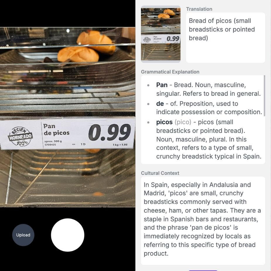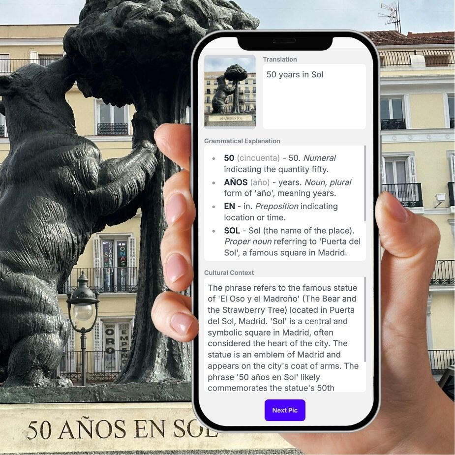 Snap any Spanish text and get a plain-English explanation of why it’s written that way — meaning, grammar, and cultural context.
